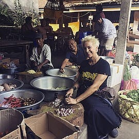 Cooking with donated foodPenny in the makeshift kitchen with donated food and other helpers preparing a meal for the evacuees.